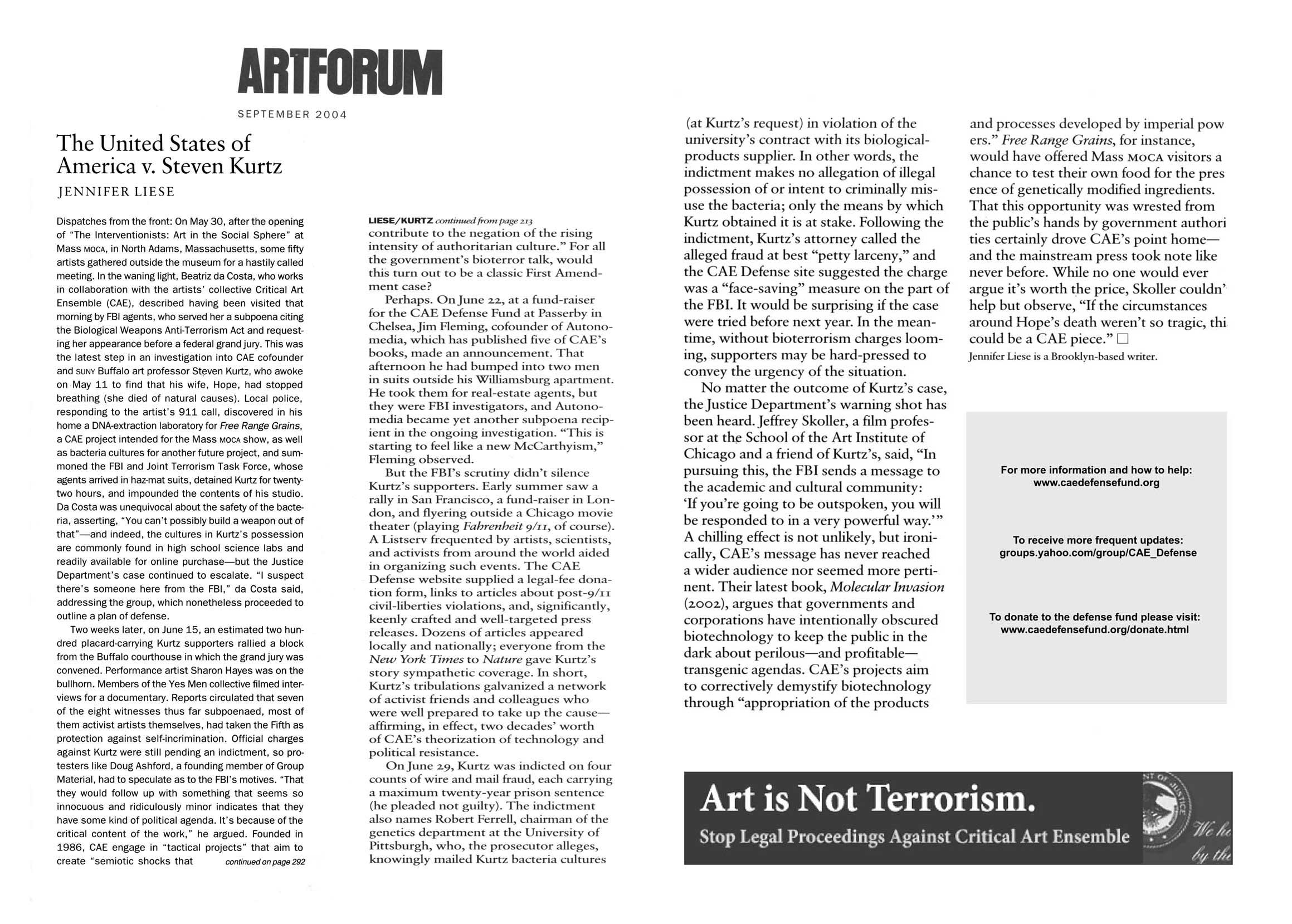 A Life Turned Upside Down: Steve Kurtz's art gained wide audience as FBI came knocking [PDF]